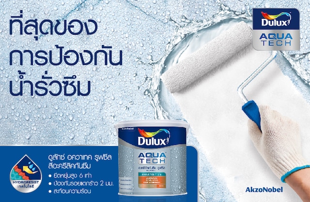 สีดูลักซ์ อควาเทค รูฟซีล สีน้ำอะครีลิคกันซึมสำหรับ ดาดฟ้าและหลังคา ฟิล์มสียืดหยุ่นสูง 6-8 เท่าของสีน้ำอะครีลิคทั่วไป ปกปิดรอยแตกร้าวขนาด 2 มม มาพร้อมเทคโนโลยี Hydroresist ช่วยป้องกันน้ำซึมผ่านดีเยี่ยม