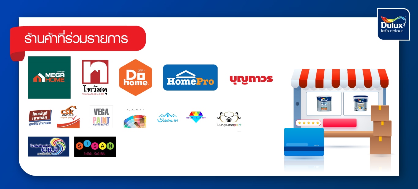 คูปองส่วนลดมูลค่า 100 บาท เมื่อซื้อสินค้าสีดูลักซ์รุ่นใดก็ได้ ขนาด 9 ลิตร จำนวน 2 ถังขึ้นไป ณ ร้านค้าตัวแทนจำหน่าย